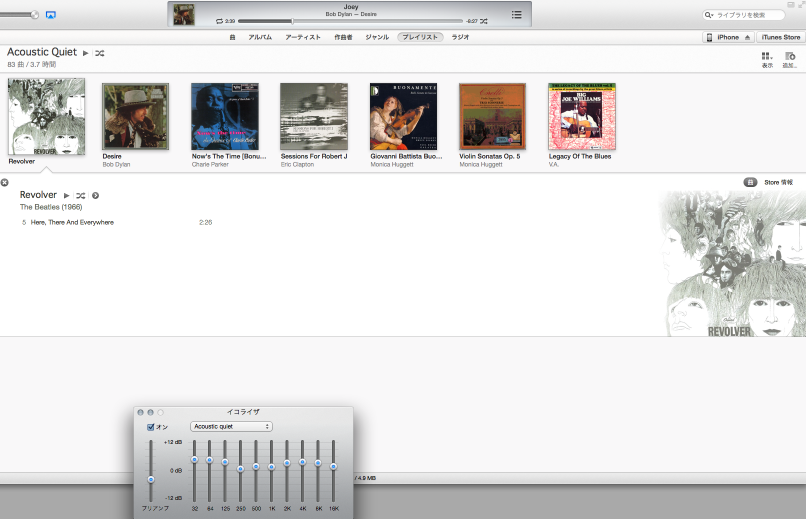 イコライザのプリアンプであらかじめ音量を下げるときもある。プリセットされてる「アコースティック」は,プリアンプの音量調節を下げたほうがなんとなくその雰囲気になると思うので。
