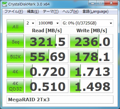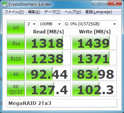 今はRAID10にしたので、実質2台のRAID0と同じ速度です。それでも早いですね。