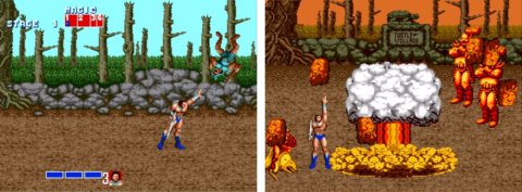 「敵を投げ飛ばした場面」と「魔法を放った場面」