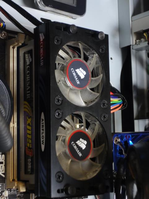 Corsair製のメモリークーラーです.60mmファン×2で,メモリーソケットを挟むように取り付けます.余程のOCをしない限り,メモリークーラーは必...