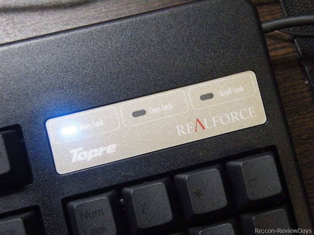 Num Lock、Caps Lock、Scroll Lockは全て青LEDになっています。