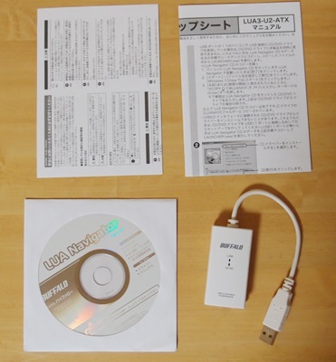 パッケージには説明書とCD-ROMと本体。