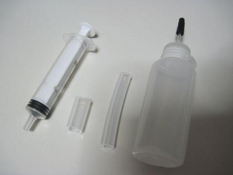 注射器のようなシリンダーとヘッドにがっつりハマるチューブがセットになっている。