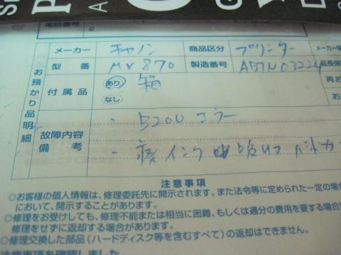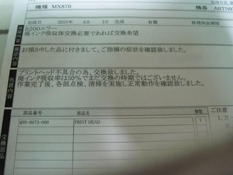 インクを取り付けて印刷もok、修理代金は12000円弱(ポイント使って2000円w)。
