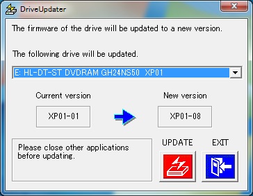 電源投入後、ドライブの認識は問題ありませんでした。私は中古・ジャンクで入手したら、とりあえず、ファームウェアがアップデートされているかチェックを行います。LGのHPを見るとVer.が上がっているようですね。