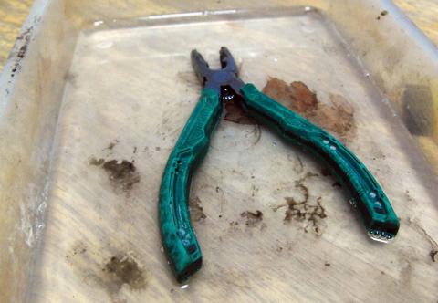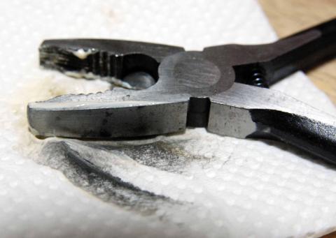 真ん中のこんもりした場所の中程の3本の溝は特にここに力がかかる様でここも劣化が激しいですね、ペンチとして日常使うには苦しい出来なのかもしれません・・・(^_^;)