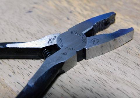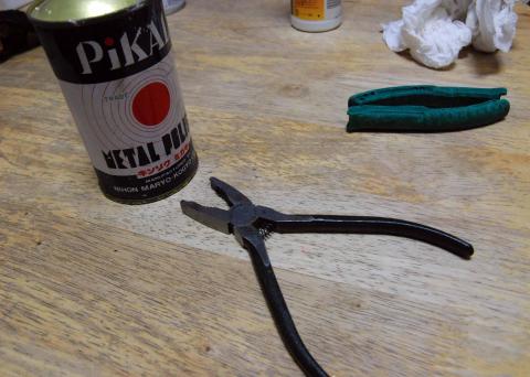 普通のプライヤーよりも丸目の頭のモノを掴むのに食いつき良いので、画鋲、ピン、バランスボールの栓などなど大活躍です。