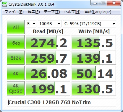 おまけ SATA2でのスコア(noTrimと書いてありますがTrim有効です)