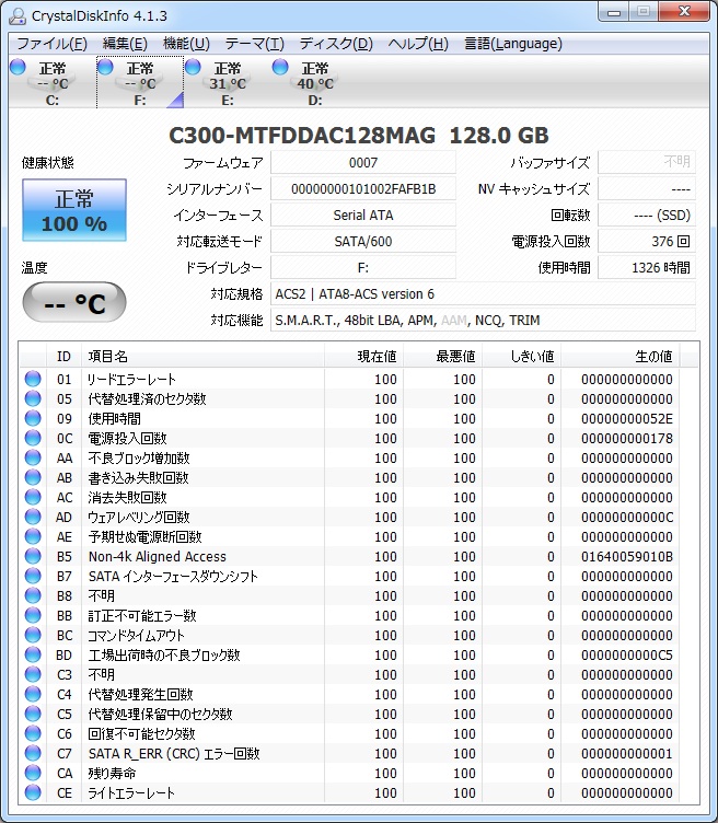 今となっては旧式のSSDですが、当時としては優秀なSSDでした。