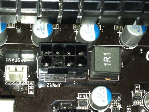 理由は、CPUへの給電コネクターの8ピン部分が、焦げているため。