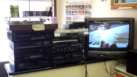 KENさんの店には昔からある自慢のステレオセットがあり、音楽やラジオに加え、モニタを組み合わせてDVDやBDなんかも再生出来ます。