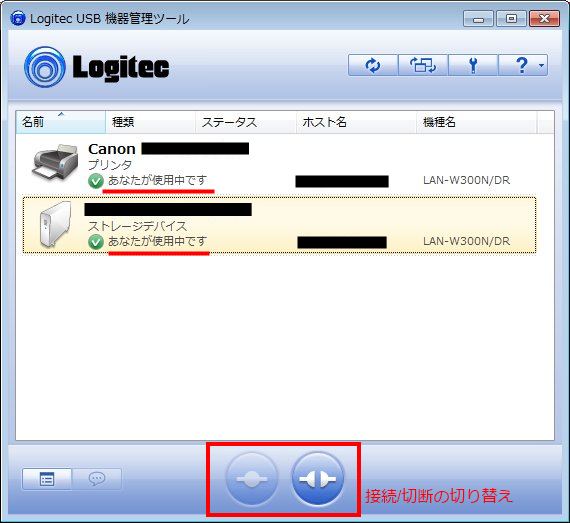 というのも、機器を使用する際には「Logitec USB機器管理ツール」というソフトを用いるのだが、USB機器を利用する度にこのソフトを用いて機器の接続を行わなければならない。