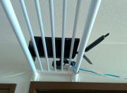 ということで、今では寝かせて使っています。無線LANという性格上、電話機の近くに置いておくのが便利なのですが、するとすぐに触ってしまって動いてしまうので、いっそのこと、廊下に置いて電波を家の長手方向に飛ばしてしまおうと考えたのです。