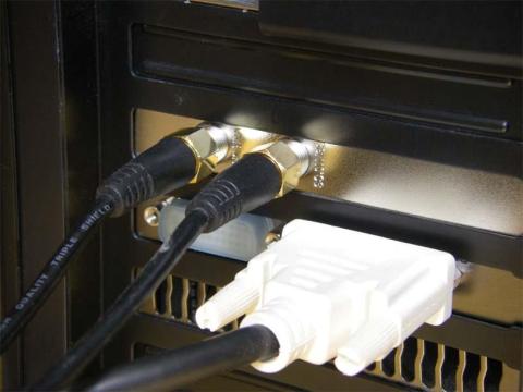 マザーボードへの接続は簡単ですが、背面のVHF/UHF端子・BS/110°CS端子へ同軸ケーブルを挿す時は、しっかり奥まで挿し込むようにしてください。