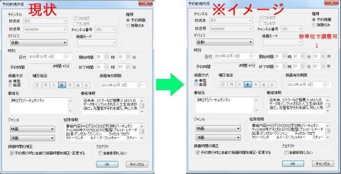 2.番組表からの録画で秒単位で時間調整が出来るようにする。