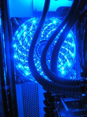 ファンコン取り付けは銀狼さんのアイデアを参考にさせていただき、水冷ホース用の穴からケース裏へ出してみました。