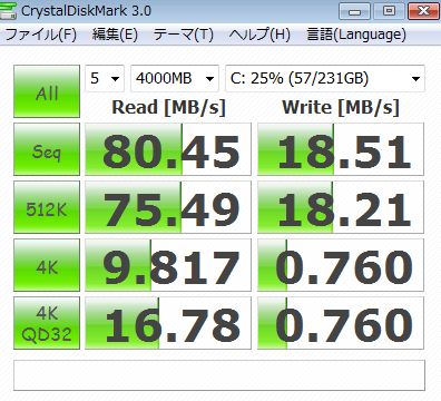 終始Writeが遅いです。HDDの方が幸せなんじゃないかと錯覚を起こします。