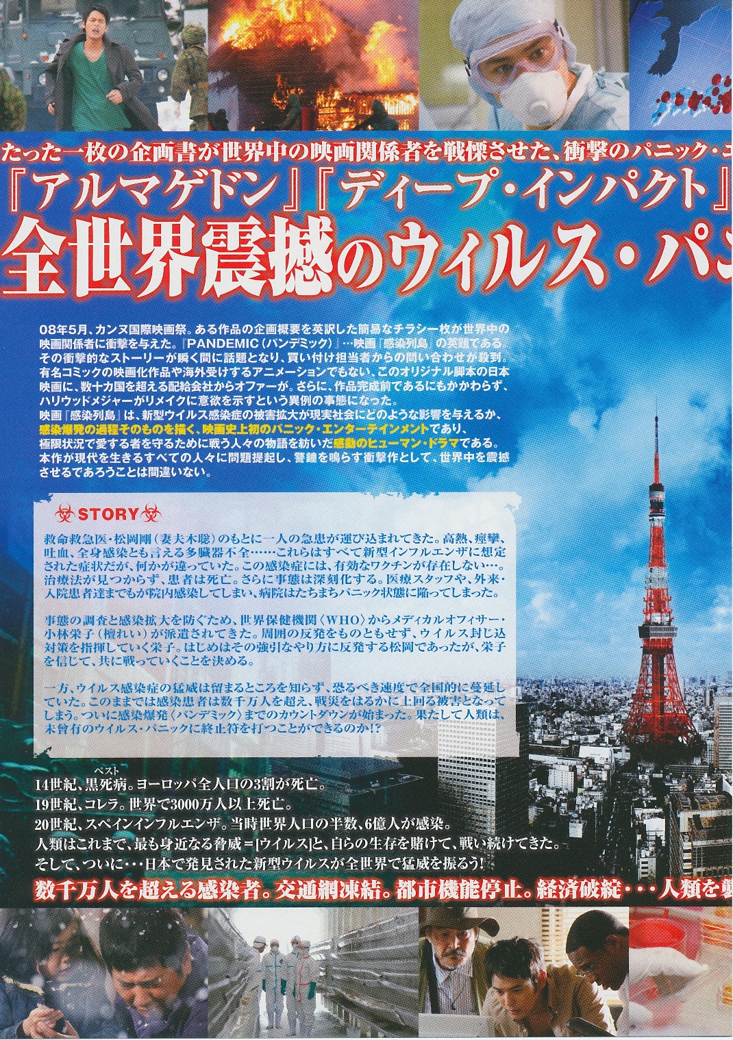 映画公開後しばらく経って新型インフルが来たので、何か公開時点では日本での反応はリアリティに欠ける物だったきが。。(笑)