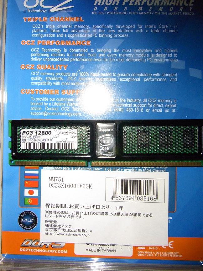 OCZのDDR3 2GB トリプルチャンネルメモリセットです。