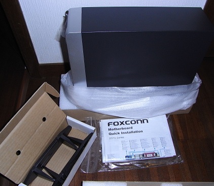 取り出して少し広げて、梱包材から引き抜いたベアボーンを立てて配置します。