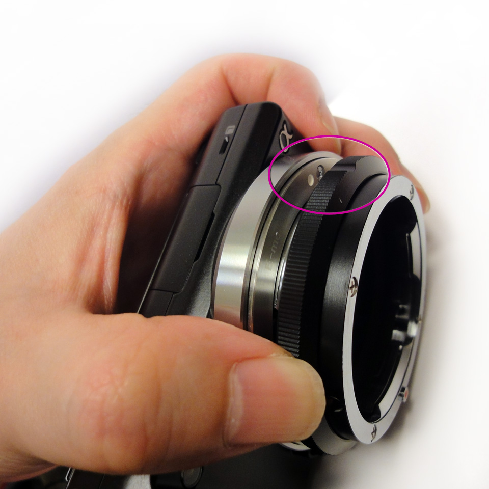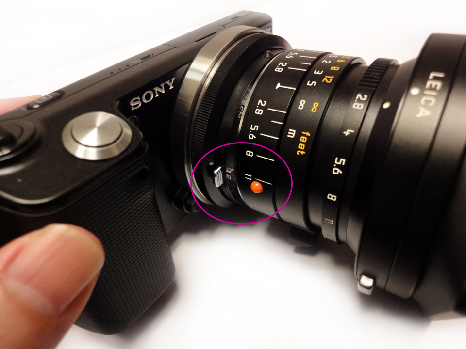 マウントアダプタとLEICAレンズを外さないで,Eマウントのレンズと