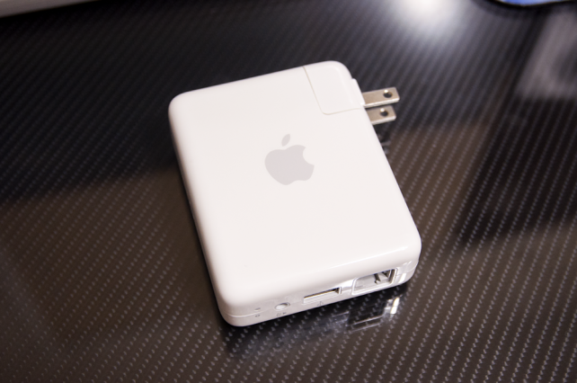 Dockコネクタからオーディオ端子も引き出そうかと思っていたのですが、そういや、昔WiFiルーターとオーディオ出力が一緒になった機器が出てたな…と思い出し、買ってみたのがこのAirMac Express。