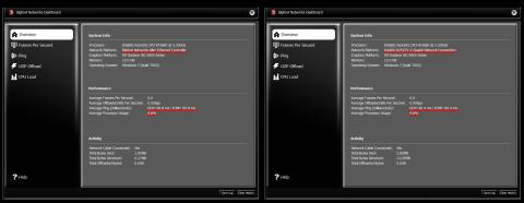 あまりにも導入前後の差異を確認できないので、Bigfoot社のウェブサイトからダウンロード出来るモニタリングソフト「Dashboard」でKiller 2100とオンボードLANのネットワーク状態を比較してみました。