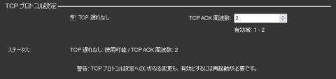 これまでの検証の結果、私の環境では「TCP ACK 周波数」を"1"にすると安定性が著しく低下します。
