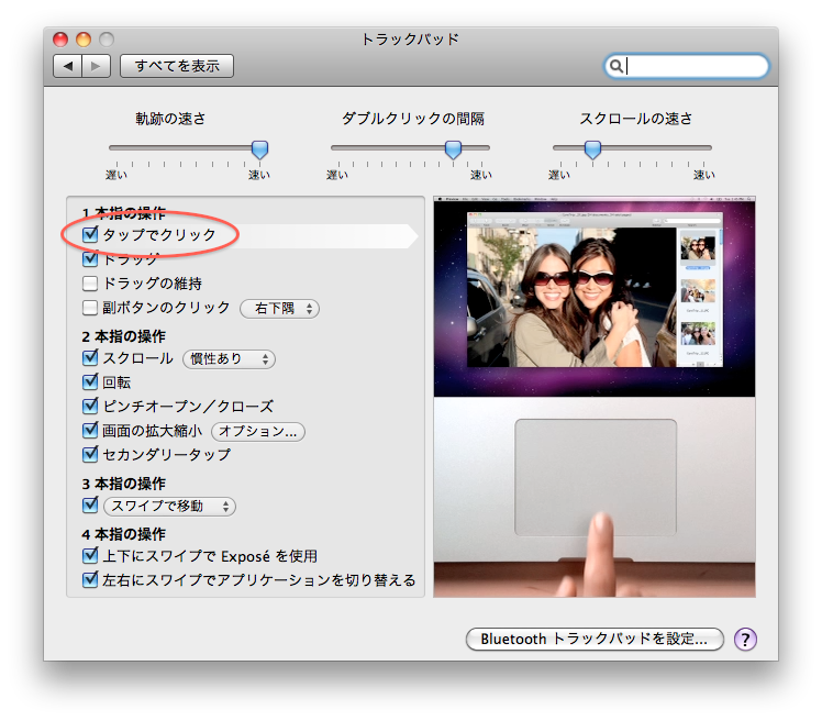 元々、タップしてもクリック扱いにならないことにストレスを感じ、数十秒悩んだあげく、トラックパッドの下部がペコッっと凹んでクリック出来ることに気づきました。