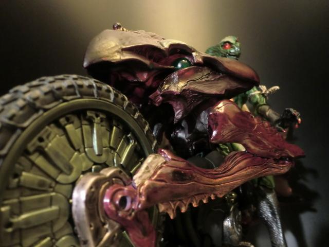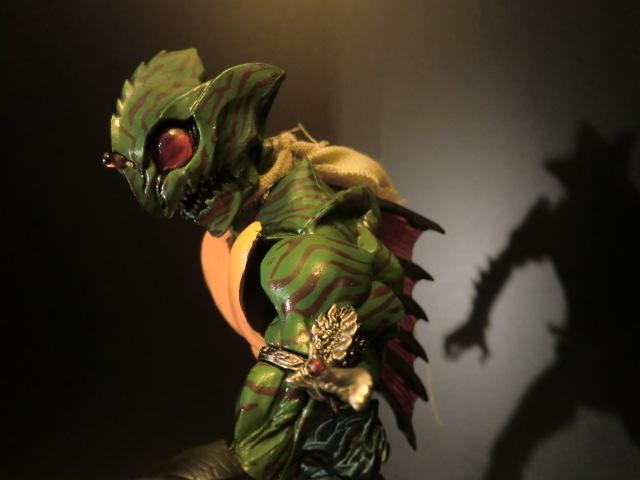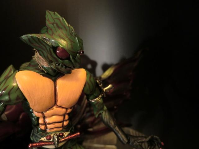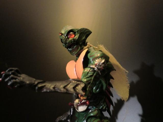 どう見ても正義のヒーローにはなりえない、爬虫類モチーフの不気味な容姿。