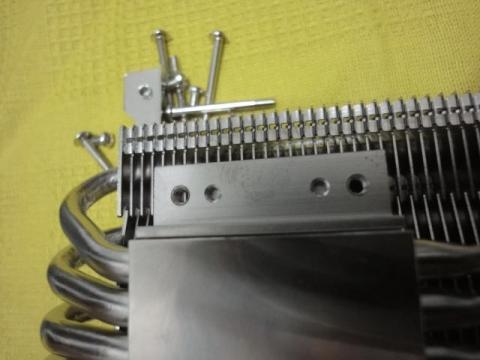 クーラーの裏側の両サイドについているくぼみにリテンションの凸をはめ込みネジ止めします