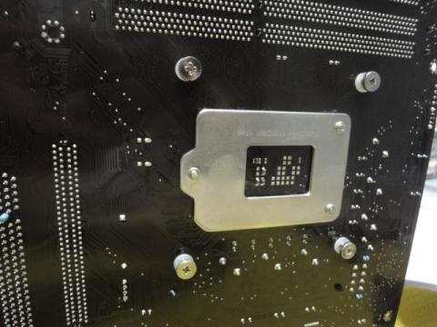 このクーラーなんですが、写真のようにマザーボードの裏側からネジで固定するため、載せるときは、必ずマザーボードを取り外さないといけません。