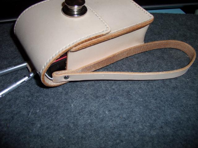 Dカンとか使わずに、革に穴をあけて紐を通しただけ。