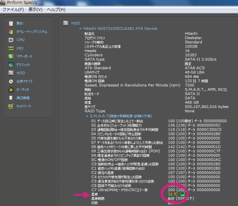 7200rpmなので熱のほうが気になるという方も居ますが、現在の自分のPCの環境においてはこちらの通り、熱の方は特に問題はありませんね・・・!