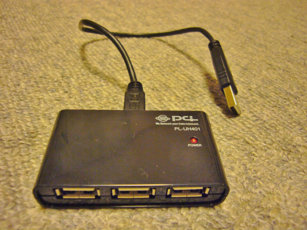 正面に3つのUSBポート、ケーブルはPCのUSBポートに繋ぎます。