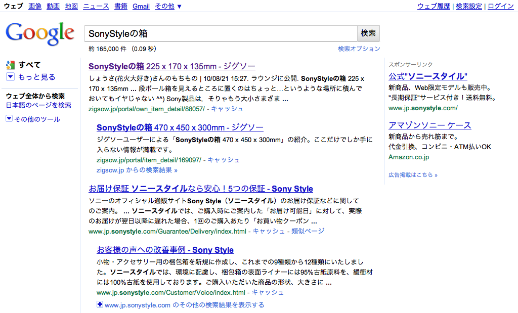 「SonyStyleの箱」をGoogleで検索すると,