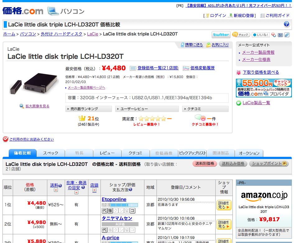 Amazonで,"HDD 2TB IEEE1394" と入力して検索