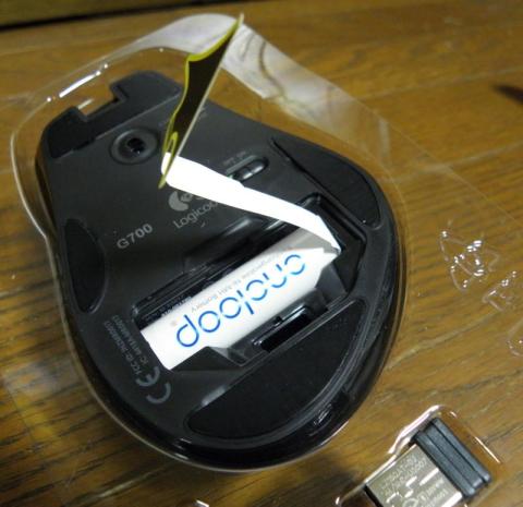 これを引っ張って取り除くことでマウスの電源が接続される。