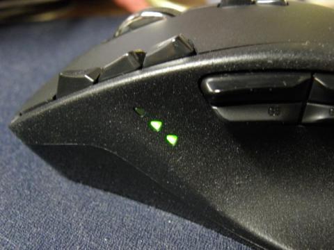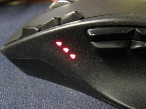 左側面にはインジケータを備え、プロファイルの切り替え、電池残量、dpi設定を確認出来るようになっている。