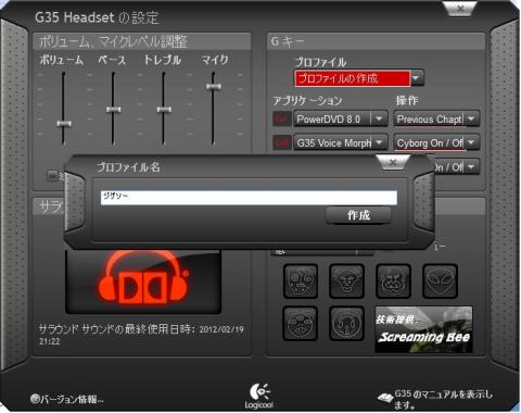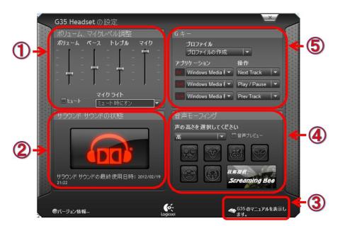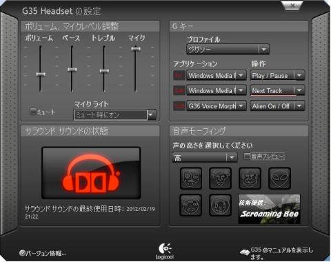 専用のドライバソフトウェア「Logitech G35 software」をインストールすることで、マイクと一緒に左エンクロージャ部のボタン4個、ボリュームコントローラ、スライドスイッチも利用可能(ドライバソフトウェアと完全連動)になります。(ドライバをインストールしなくてもUSBヘッドフォンとして利用可能)