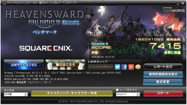 IYHしたかいがありますね!! GeforceのGTX950で計測結果です!