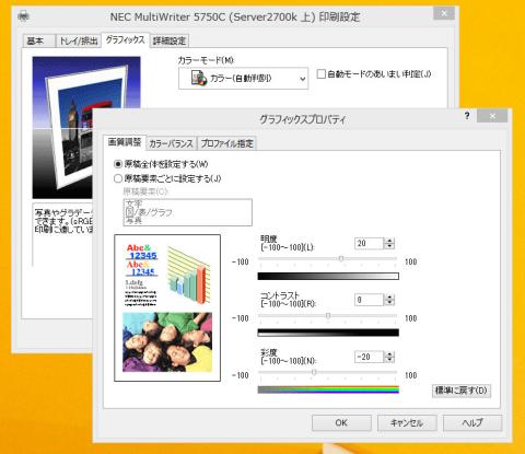 写真印刷は、少し派手な色合いになるので、プリンタダイアログで調整するといいです。