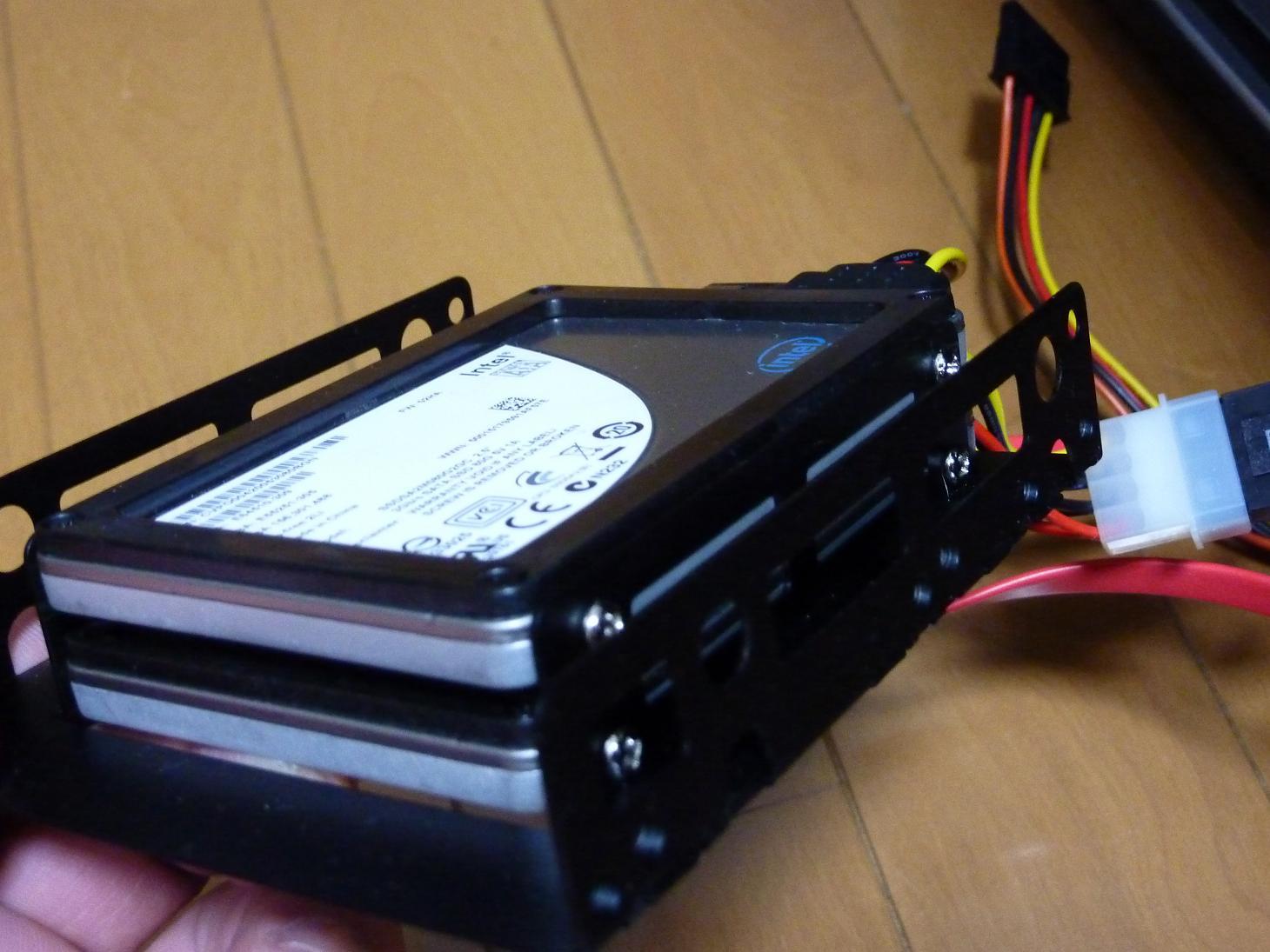 息子PCにSSDを増設するときに使ったアダプタ。3.5インチベイに、厚さ9.5mm以下の2.5インチSSDもしくはHDDを固定できる商品。こういう「重ね型」のア...