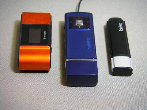 画像左側「DP100」、右側USBメモリー「I-O DATATB-BH4G/K」