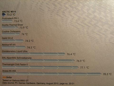 他社のグリスとの性能比較ですが、海外サイトのHardwareHeaven.comでの