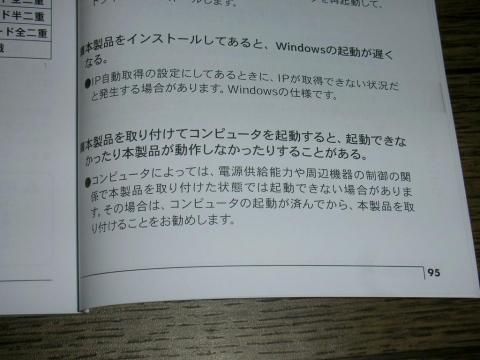 あと、この取扱説明書は、このカード専用のものなのですが、FAQを使いまわしているせいか、PCI接続のカードなのに、「コンピュータの起動が済んでから、本製品を取り付けることをお勧めします。」