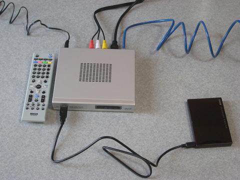 キャッシュ用USB接続ハードディスクを本体のUSBポートに接続し、テレビにはHDMIケーブルととビデオケーブルで接続し、LANケーブルで接続可能なLANポートにつないだ後、ACアダプタをコンセントに接続する。電源ランプが点灯すれば、レディ状態に。
