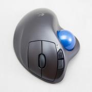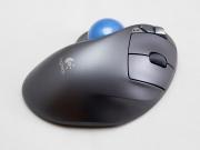 Unifying対応、トラックボールを使用する事で机上での占有面積を小さく出来るという目的は果たせたものの、特に「進む/戻る」ボタンの位置に不満が残ります。