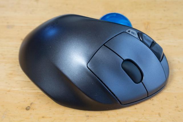 トラックボールの大きさはちょうど良い大きさです。親指でボールを転がすにはいいサイズです。サイドボタンもあり、ブラウジングの戻す・進むに割り当てています。