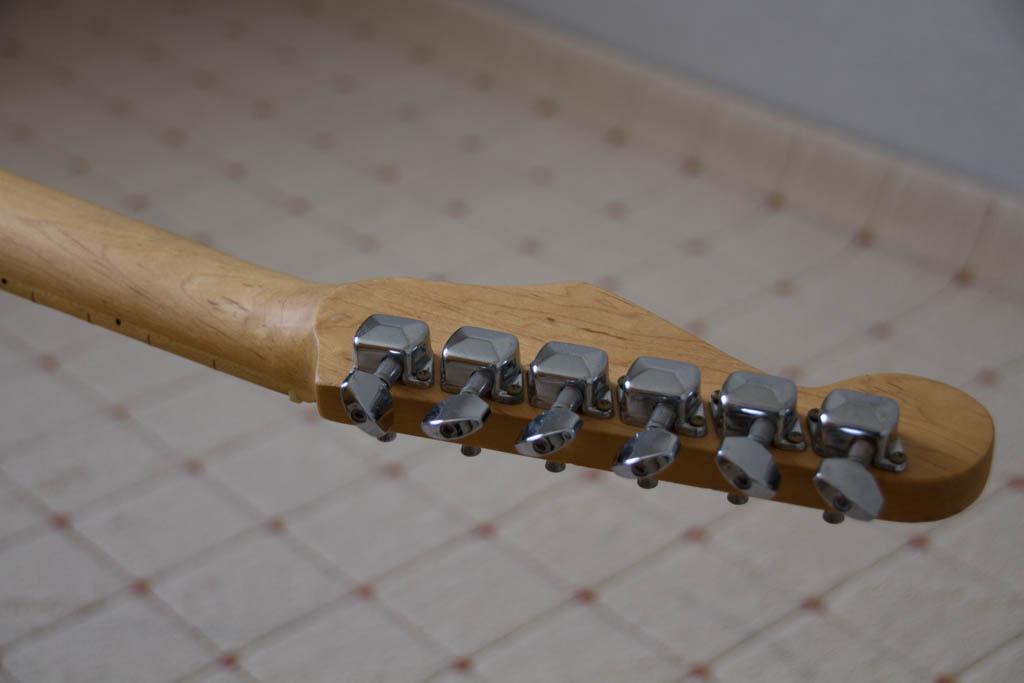 ネック裏はサテンフィニッシュっぽい処理がされています。が、あくまで5800円のギターですから、格安ギターでよく見かける簡易処理とでもいいましょうか・・・まぁ、そんな感じです。